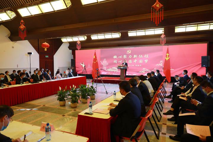 陈大使在讲话中首先阐释党的二十大召开的历史背景和里程碑意义,介绍大会取得的三大成果。最重要的政治成果是选举产生了以习近平同志为核心的新一届党中央。习近平总书记再次当选中共中央总书记,是民心所向,众望所归。大会进一步确立了习近平同志在党中央和全党的核心地位,为夺取新时代中国特色社会主义伟大胜利奠定了坚实政治基础。其次是开辟马克思主义中国化时代化新境界,系统阐释中国式现代化理论,为新时代全面建设社会主义现代化国家指明方向。三是新实践催生党章新修改,党章修正案充分体现马克思主义中国化、时代化的最新成果,有利于坚持和加强党中央集中统一领导、坚持不懈用习近平新时代中国特色社会主义思想凝心铸魂,团结带领全国各族人民夺取中国特色社会主义新胜利。