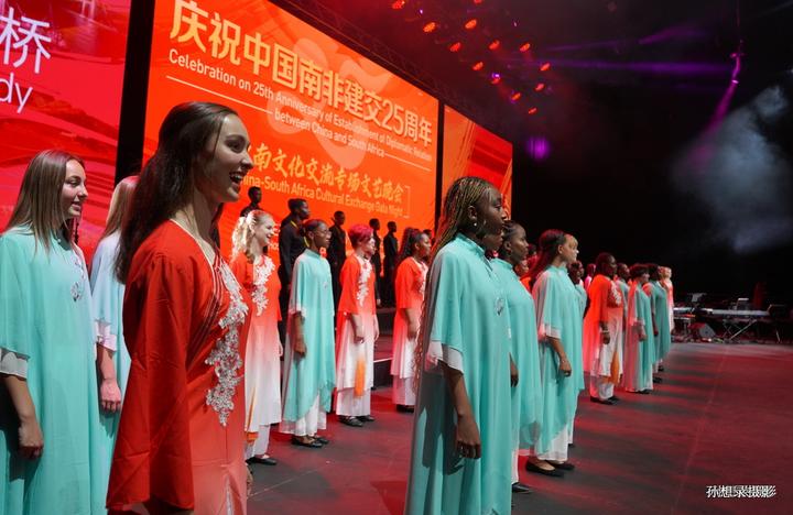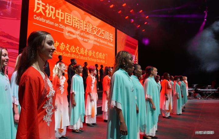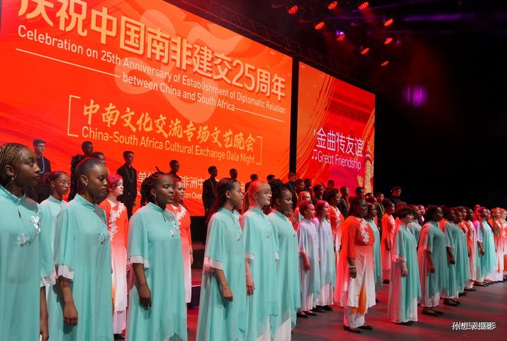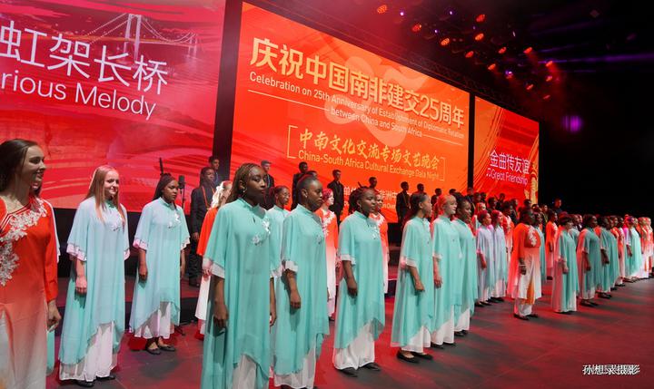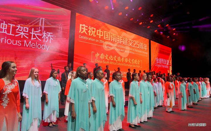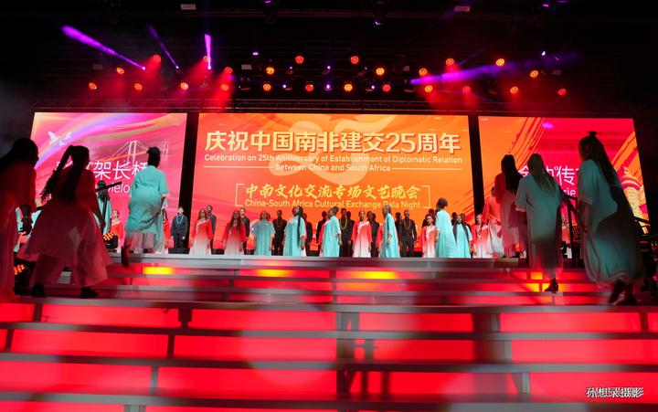 周年,中南文化交流专场文艺晚会在行政首都比勒陀利亚时代广场阳光演艺大厅隆重举办,本次活动由南部非洲中华福建同乡总会主办,比勒陀利亚大学艺术学院的学生和全场2000余名华侨华人一同凑唱国歌。