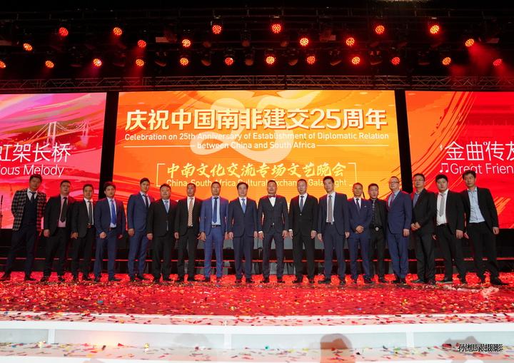 10月7日,庆祝中南建交25周年,中南文化交流专场文艺晚会在行政首都比勒陀利亚时代广场阳光演艺大厅隆重举办,本次活动由南部非洲中华福建同乡总会主办,晚会在歌唱祖国声中落下帷幕。