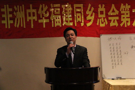 人民网约翰内斯堡8月4日电 (记者 张建波)南部非洲中华福建同乡总会第九届会长选举大会2日在南非经济中心约翰内斯堡举行。同乡总会第八届会长杨天峙凭借147张选票位列49名候选人之首,连任会长一职。作为南非最大的华人同乡会,南部非洲中华福建同乡总会成立于1997年,目前共拥有近1.5万名会员。