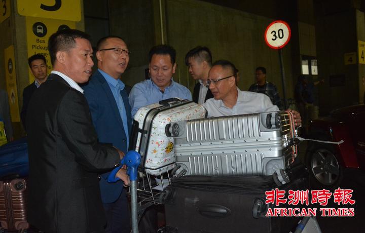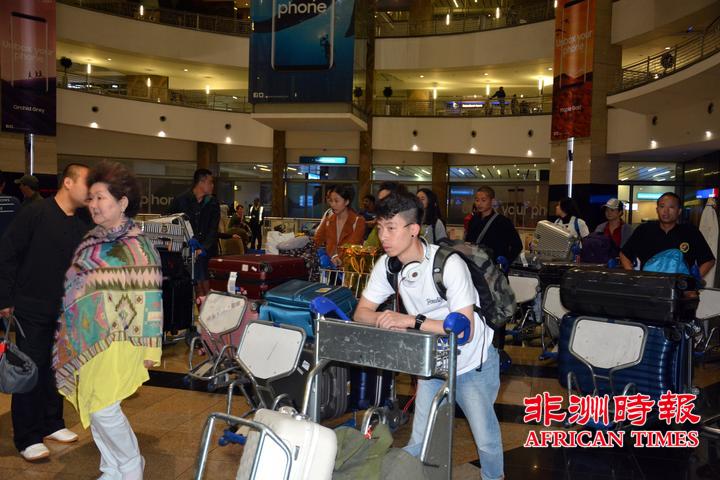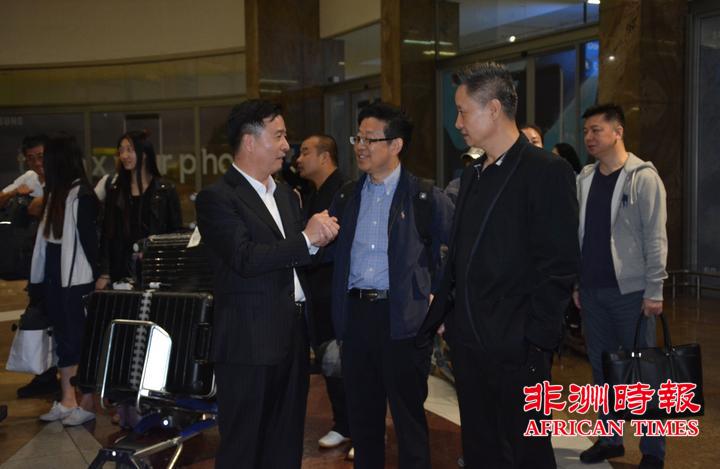 由国务院侨务办公室宣传司许玉明司长率领的赴南“文化中国慰侨艺术团”,于9月28日晚9时许抵达约翰内斯堡国际机场,中国驻约翰内斯堡总领馆屈伯勋副总领事、买欣全主任、矫磊领事,南部非洲中华福建同乡总会杨天峙会长、南非华商总会郑星利会长和同乡总会主要干部成员到机场迎接。