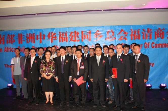 福清市林贤市长、中国驻南非大使馆乔杰参赞、中国驻约堡总领馆李江宁总领事、大约堡市孙耀亨议员、约翰内斯堡市经济发展委员会威利主席、非洲中华总商会王龙水会长、全非洲中国侨联青年委员会陈宝进主席、南部非洲中华福建同乡总会杨天峙会长、南非华人警民合作中心吴少康主任、南部非洲吉林总商会徐长斌荣誉会长、南部非洲温州总商会朱书宏会长、南部非洲上海工商总会姒海会长、资深老侨代表梁职臣先生、南部非洲江苏总商会陈辉会长、中国驻南非媒体、当地媒体和侨界代表及福清乡亲等500多人出席了就职典礼。