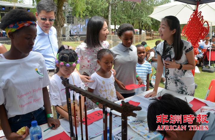 12月8日,南非外交部在行政首都比勒陀利亚举办各国驻南非使团节活动。中国驻南使馆以中国美食、现场书法、文艺演出等形式参加。