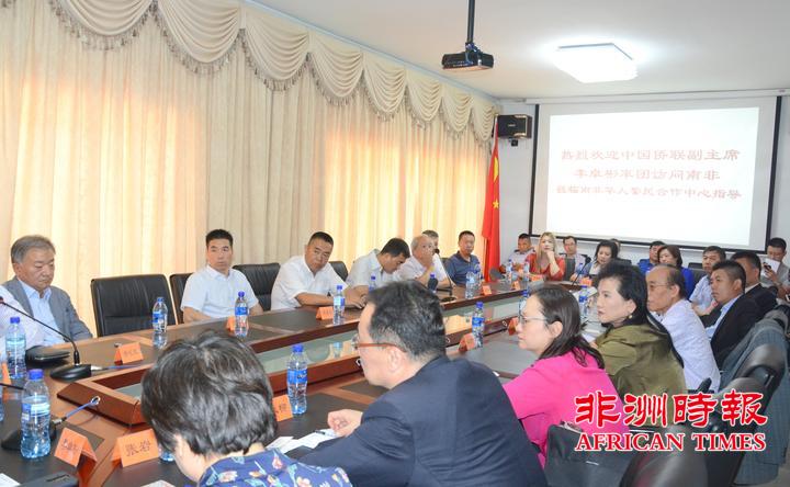 中国侨联副主席李卓彬22日到访约堡南非华人警民合作中心,与华人华侨代表就侨务工作、安全形势、经贸交流等内容进行座谈。