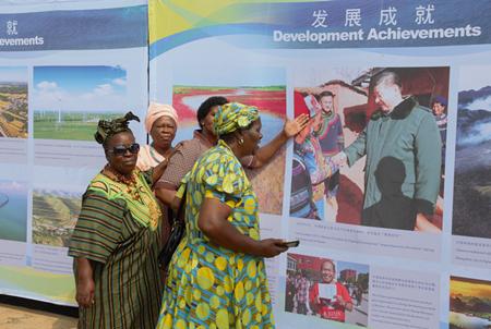 招待会在纪录片《鸟瞰中国》中拉开帷幕。来宾们还参观了中国改革开放40周年图片展,并共同观看《中国改革开放的故事》、《蒙内铁路》、《美丽中国》、《新疆是个好地方》等纪录片。活动期间,非国大妇联代表们载歌载舞,数度将现场气氛推向高潮。