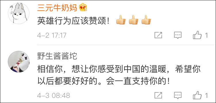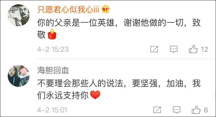 如今,宁大人的微博主页上,满满都是为他鼓劲的声音:你要好好留在中国,你的父亲是英雄!