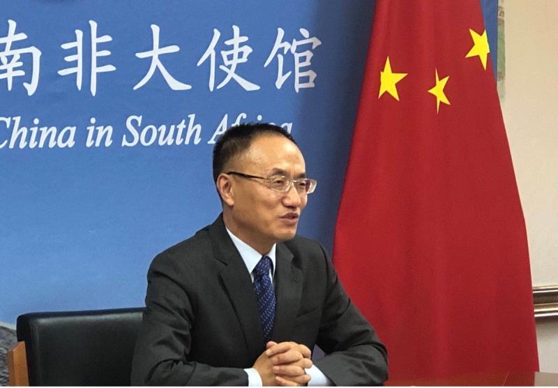 10月27日,驻南非大使陈晓东视频拜会驻南非外交使团长、刚果(金)驻南非大使博科。
