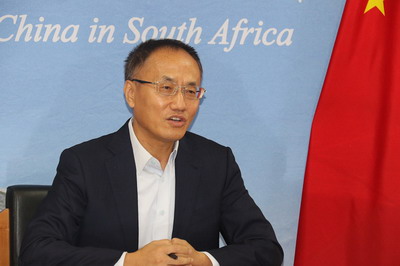 2020年10月23日,驻南非大使陈晓东视频会见南非约堡大学校长特斯利兹·马瓦拉教授。