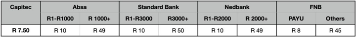 无论如何,南非银行收取的、比较高的跨行转账费用可能是很多中国同胞不习惯的。因为中国的银行之间的转账收费是很低的,而且也几乎全是即时到账。