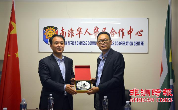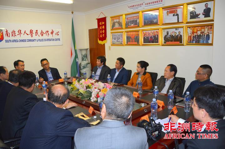 李新铸主任代表南非华人警民合作中心向杜航伟书记一行访问南非表示热烈的欢迎,他向访问团一行简要介绍了南非的安全形势、警民中心的成立背景和日常工作情况。他表示,为了更好的为遇到各类困难的侨胞提供帮助,近几年来,南非各地相继成立了省市级华人警民合作中心,面对南非日益严峻的安全形势,警民中心将继续团结在南华人华侨们,协助南非警方打击犯罪,为构建平安侨社而努力。
