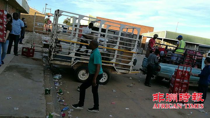 今天,在防暴警察的掩护下,北开普省华人警民合作中心主任陆明晖和当地CPF副主任前往该骚乱区协助搬离华商店铺物资,由于物资众多预计凌晨才能运完。