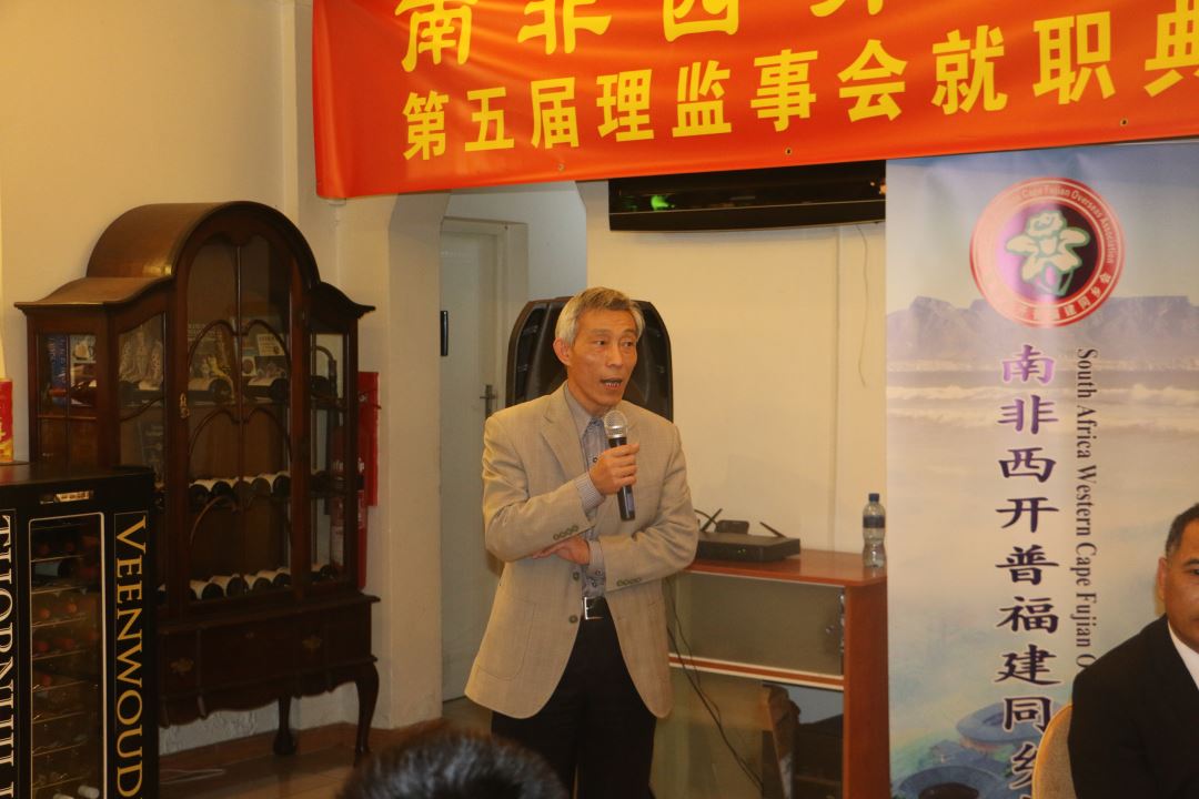 胡建华会长祝贺郭永明会长连任及理监事就任。他表示,福建同乡会是西开普省最大侨团,并在近年来快速成长,取得骄人成绩。希望广大侨胞团结互助,顽强拼搏,为开普敦和谐侨社贡献力量。