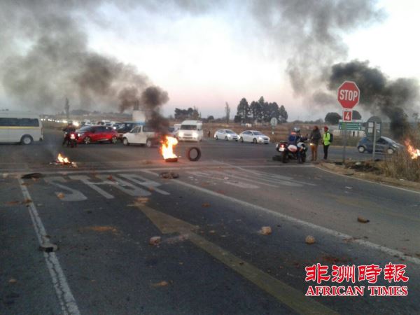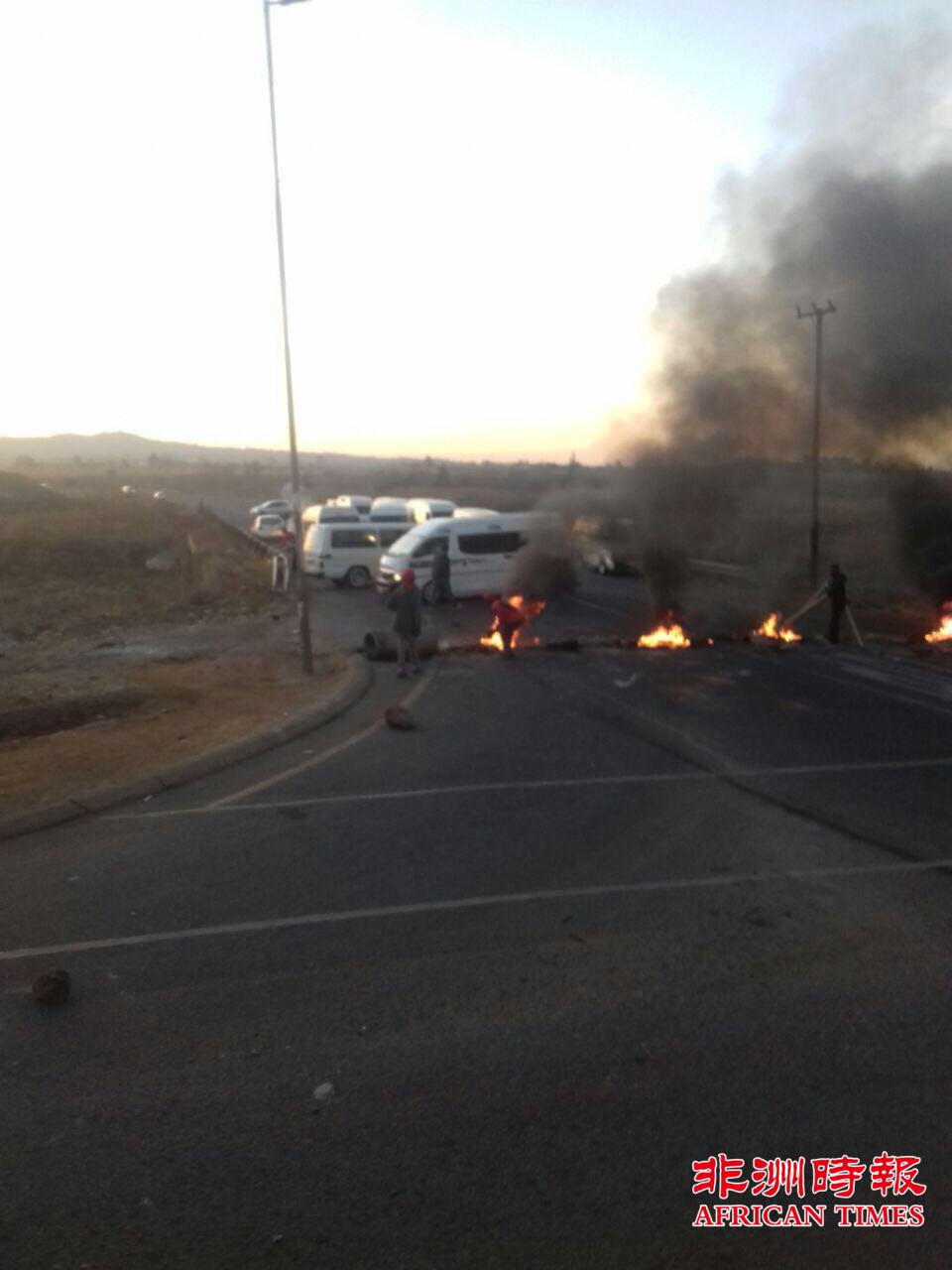 从今天清晨5.00约堡市公共安全局开始陆续接获通报各地区发生骚乱情况,骚乱者以焚烧轮胎和石块阻挡道路。目前受影响的地区和路段为;Jabulani, Naledi, Emdeni, Chris Hain Road Moroka地区, Meadowlands zone 3, Soweto Highway, Rifle Range Road 靠近Southgate, Randfontein 及Impala, Elias Mostoaledi 及Main Reef, Beyers Naude 及Marina还有Hole in one Ruimsig地区。