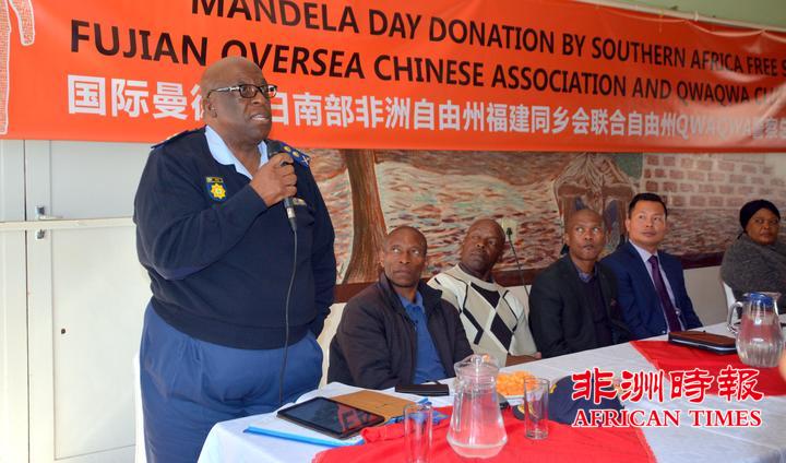7月18日是联合国确定的“纳尔逊·曼德拉国际日”,南非自由州省福建同乡会联合夸夸(QwaQwa)警察总局在当地养老院举行了一场大规模的慈善捐赠活动,为该养老院的孤寡残障老人们捐赠了包括大米、粮油、毛毯、卫生纸在内的生活用品200多份,总价值超过10万兰特。夸夸警察总局局长Moloi,自由州省警民合作论坛主席Moshodi,自由州省福建同乡会会长石钦平等出席并致辞。