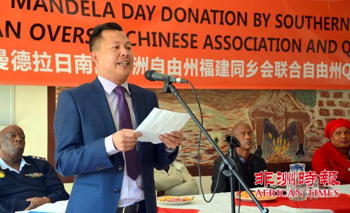 他说,一直以来,我们在南非的30万中国人都致力于为当地社区、学校、医院、孤儿院及养老院举办各类慈善捐赠,自由州各地有近万民中国人生活在这里,每年,在自由州福建同乡会的组织和带领下,我们和警察局联合多次慈善活动,这就充分证明,无论什么时候,中国人民与南非人民永远坚定地站在一起。他同时介绍到,我们中华民族有着“乐善好施,扶危济困”的传统美德,为此,促进南非的就业,改善南非民众的生活环境,提高大家的物质文化和精神文化生活,也是我们每一位生活在南非的中国人的社会责任和义务。