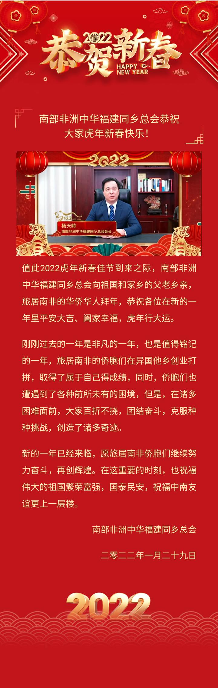 南部非洲中华福建同乡总会恭祝大家虎年新春快乐!