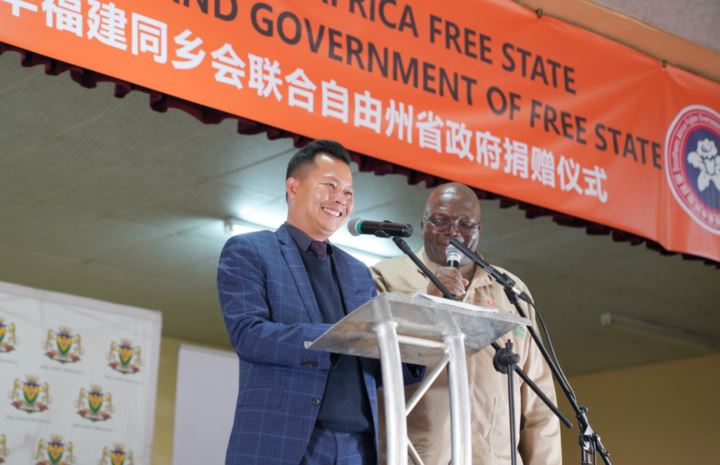 石会长特别感谢驻约堡总领馆周副总领事专程来参加这场意义重大的慈善捐赠活动,这充分体现了总领馆对自由州福建同乡会的关心和支持,对自由州民众的时刻关注;此外,他还对自由州省杜克瓦纳省长和各政府部门一直以来给予自由州华侨华人的支持表达谢意。