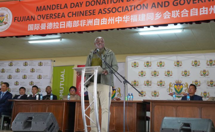 捐赠仪式上,石钦平会长表示,七月的南非虽有一丝丝的寒意,但也伴随着冬日暖阳,带给自由州人们无限的希望,曼德拉一生致力于废除南非种族隔离制度、倡导自由平等、消除贫困等伟大事业,不懈奋斗、无私奉献、睿智思考贯穿他的一生。今天大家齐聚在此,就是为了做非常有意义的事情,希望能够帮助在场的居民度过这个寒冷的冬天,并用实际行动践行关爱弱势群体、共建美好世界的“曼德拉精神”。