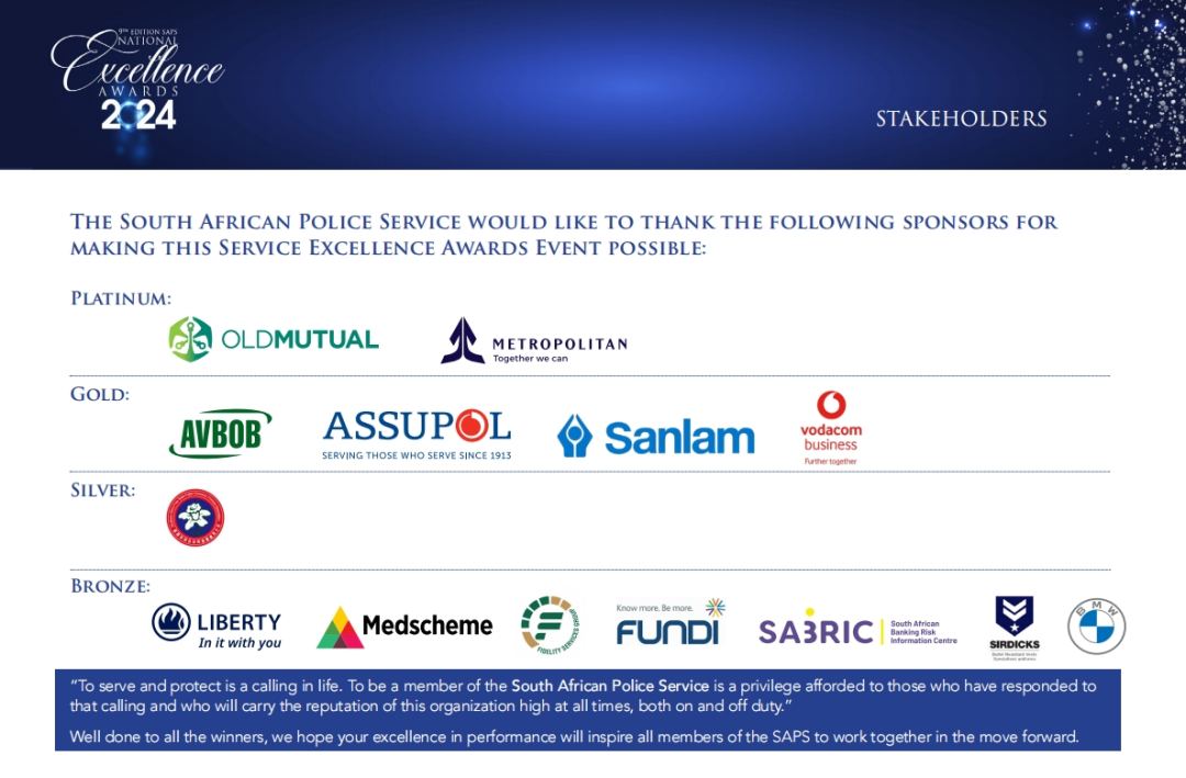出席颁奖典礼的有南非警察部长塞勒上将,南非总统府部长恩特沙韦尼、南非警察部副部长卡塞尔·马萨勒、南非国家警察总监马塞莫拉上将、南非警察部副总监马赛凯利中将,以及其余省份警察总监、副总监和提名警察个人和团体。自由州福建同乡会会长石钦平率领副会长庄辉、副会长梁洪、副会长谢师进、副会长杨孝银、副会长高理君参加。