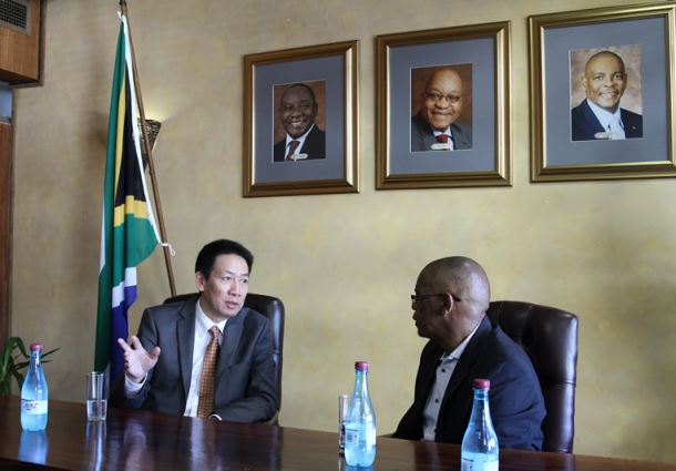 4月19日,阮平总领事在布隆方丹拜会自由州省省长马哈舒勒(Ace Magashule),任晓霞副总领事陪同会见。