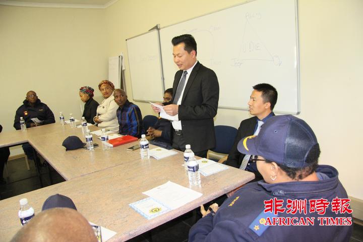 石钦平会长在发表讲话中谈到在不良的社会治安背景下,这些防暴警察为华人在该地区经商生活提供了积极有效的帮助,每次出现治安危险爆乱总是第一时间出现在现场,给犯罪份子予以震慑,为保障及挽回华商的人身与财物安全做出了贡献。在退休活动仪式上,石钦平会长在表示感谢地同时也进一步探讨未来如何就地区治安形势加强联动,建立一个良好的警讯沟通渠道,让更多的华人能在危险的第一时刻得到帮助,更好的保障地区内华商的日常经商与生活。